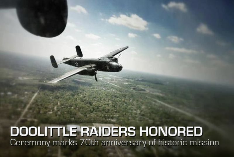 The banquet commemorated the 70th anniversary of the Doolittle raid, where the crews of 16 B-25 bombers took off from the deck of the USS Hornet and dropped bombs on several locations in mainland Japan. After the mission, the crews didn’t have enough fuel to return home and 15 of the B-25s were either crash-landed in Japanese-occupied China or abandoned when their crews bailed out. The final B-25 landed safely within the borders of the Soviet Union and was the only plane to survive the mission.