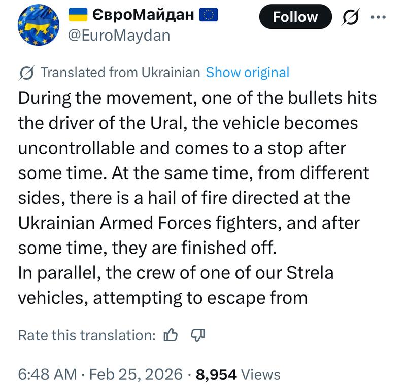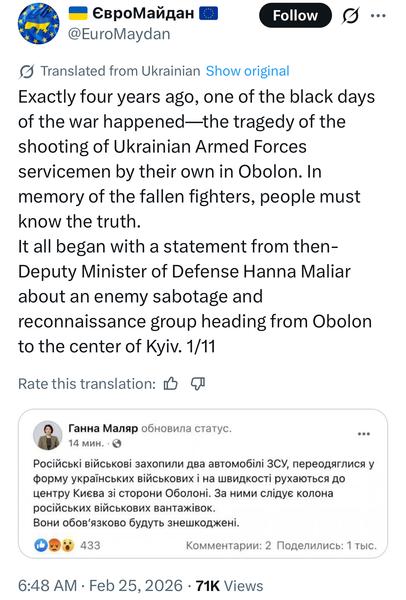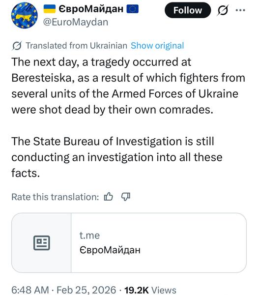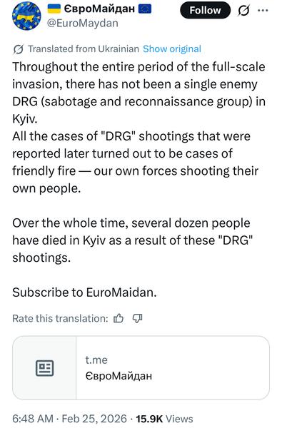 I, personally, have no idea why people still do not treat everything said by either side (though RU side is not overly advertised in our parts), and that especially applies to the Ukrainian stories from the early days, as complete rubbish until proven otherwise. Usually, it is proven to be exactly that - rubbish. Which is why I asked previously, what is going to happen when people realize that they have been living in a fairytale environment for years now. Especially relevant for Ukrainians living in Ukraine and their exposure to propaganda is significantly higher than that of the rest of the world.