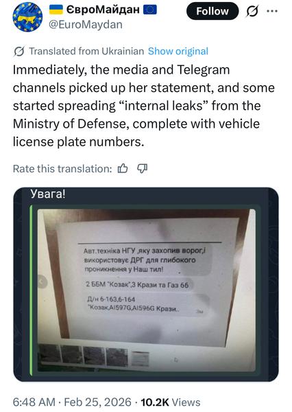 Furthermore, the discovery of the UA uniforms by the Russian troops at the airport, potentially led to a whole bunch of Ukrainians in Kyiv (and elsewhere) being killed by Ukrainians, as Russian infiltrators. I had already commented on it previously. Here is a short thread on it from yesterday in Ukrainian: