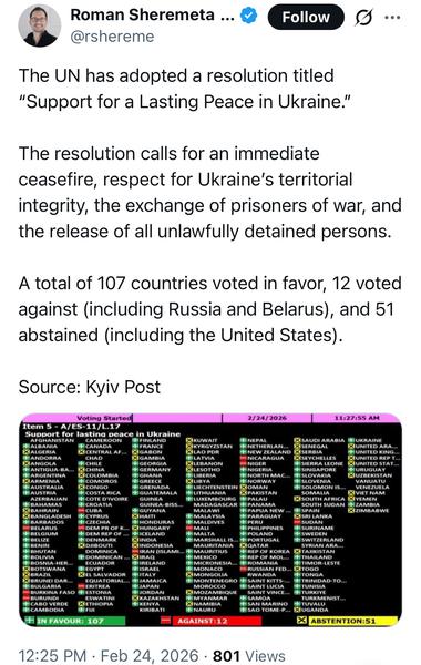 A UN vote on the resolution on the war in Ukraine took place. The UN described it as a record vote. Seems to be an anti-record as far as the UA post-22 resolutions are concerned. Talking about lack of influence and whatnot, out of the 12 (Balts aside) ex-Soviet republics, only Georgia and Moldova voted in favour.