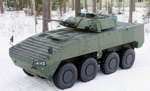 Patria Vehicles Armoured Modular Vehicle fitted with General Dynamics Land Systems - California Technical Centre LAV-30 two-person turret (General Dynamics Land Systems)