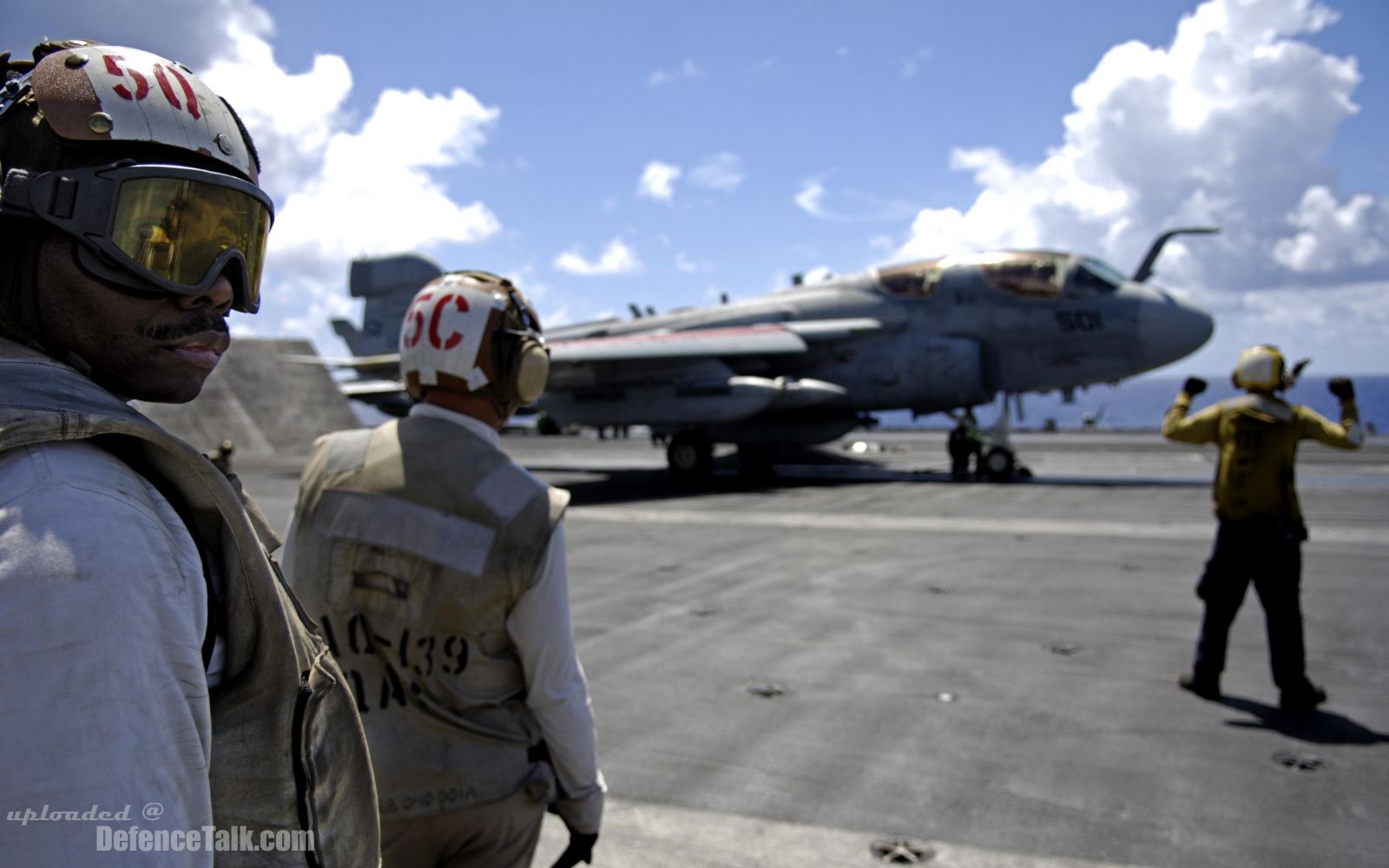 Philippine Sea (June 17, 2006) - Australia and the People's Republic of China civilian and military dignitaries observe Exercise Valiant Shield 2006 aboard the Nimitz-class aircraft carrier USS Ronald Reagan (CVN 76). Valiant Shield focuses on integrated joint training among U.S. military forces, enabling real-world proficiency in sustaining joint forces and in detecting, locating, tracking and engaging units at sea, in the air, on land and cyberspace in response to a range of mission areas. U.S. Navy photo by Photographer's Mate 2nd Class Aaron Burden