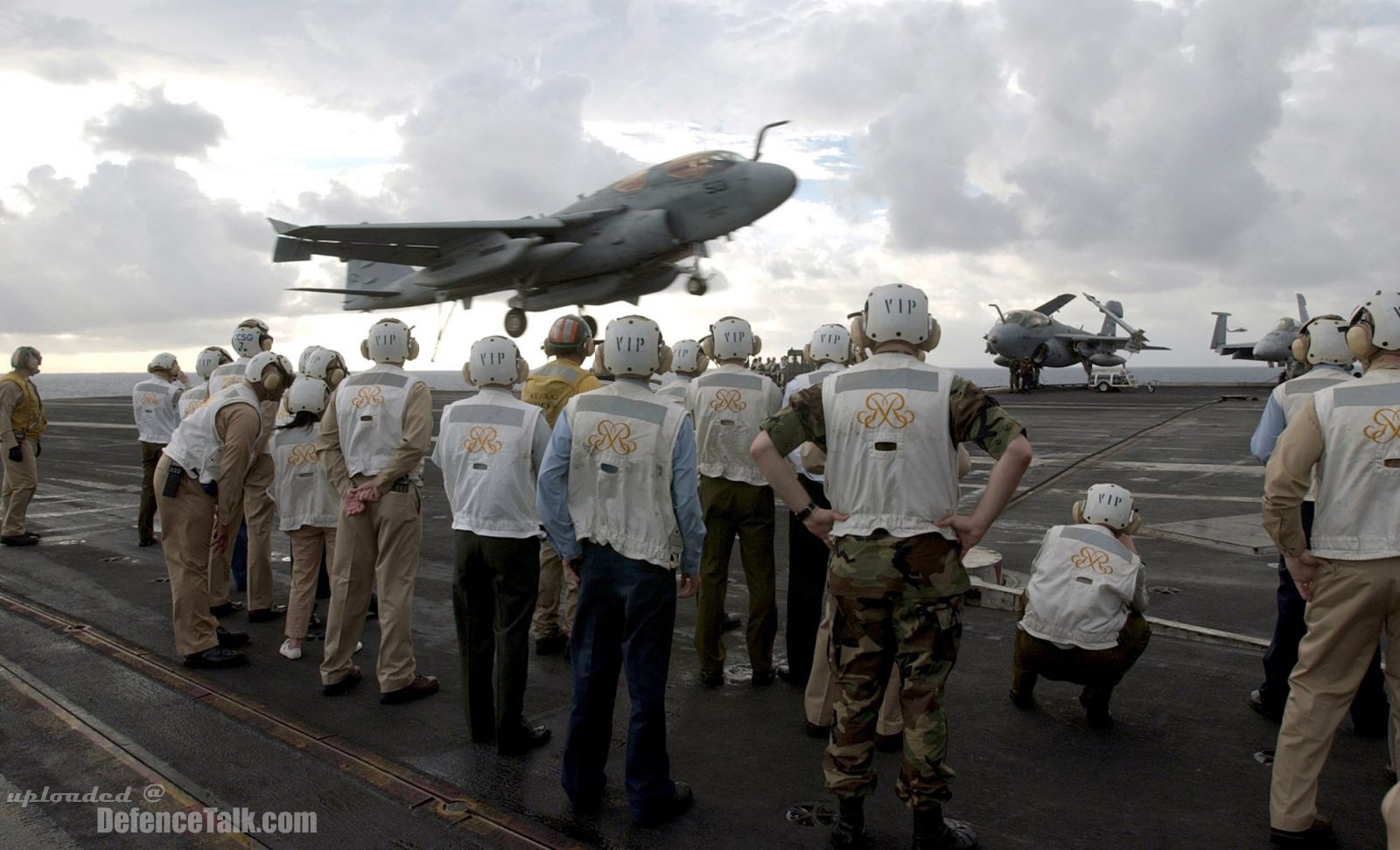 Philippine Sea (June 17, 2006) - Australia and the People's Republic of China civilian and military dignitaries observe Exercise Valiant Shield 2006 aboard the Nimitz-class aircraft carrier USS Ronald Reagan (CVN 76). Valiant Shield focuses on integrated joint training among U.S. military forces, enabling real-world proficiency in sustaining joint forces and in detecting, locating, tracking and engaging units at sea, in the air, on land and cyberspace in response to a range of mission areas. U.S. Navy photo by Photographer's Mate 2nd Class Aaron Burden