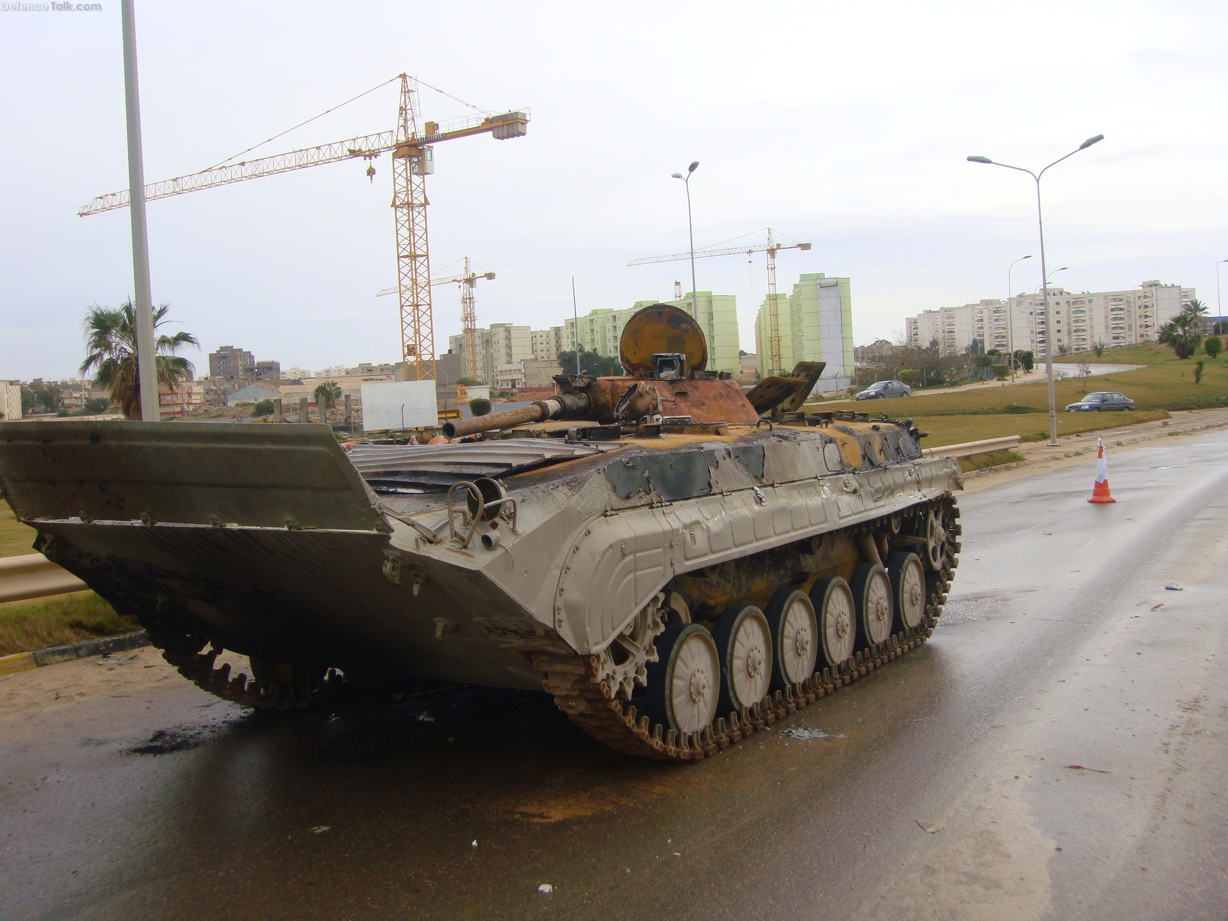 A photo dating back from February 22 showing a Libyan Army burned out BMP-1 in Benghazi.