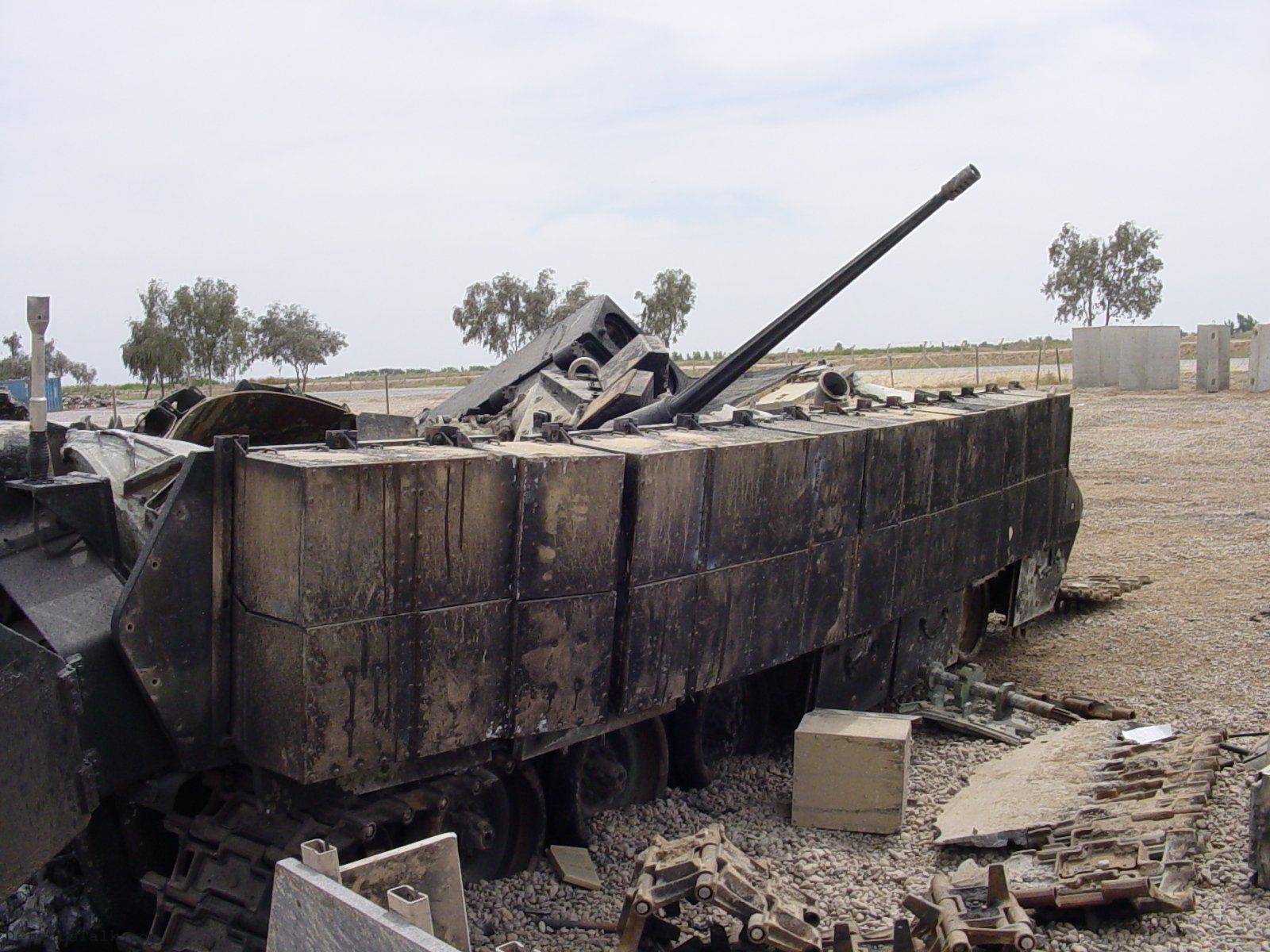 An obliterated M2A2 in Iraq. The vehicle was hit by a roadside bomb.