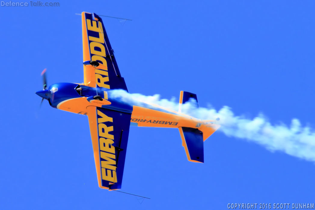 Matt Chapman Extra 330LX Stunt Aircraft. Air show flight demonstration, Thunder Over the Empire Air Show, March Air Reserve Base AirFest 2016