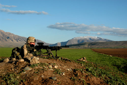 A lone US machinegunner maintains a sentry watch in north Iraq.