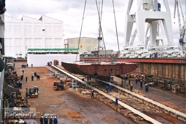 16 of May of 2003. After the launching of the frigate F-103 "Blas de Lezo", it is come to the act of keel putting of the last unit of fixed East the F-100. program marks the beginning of the assembly of the blocks in launching slip.