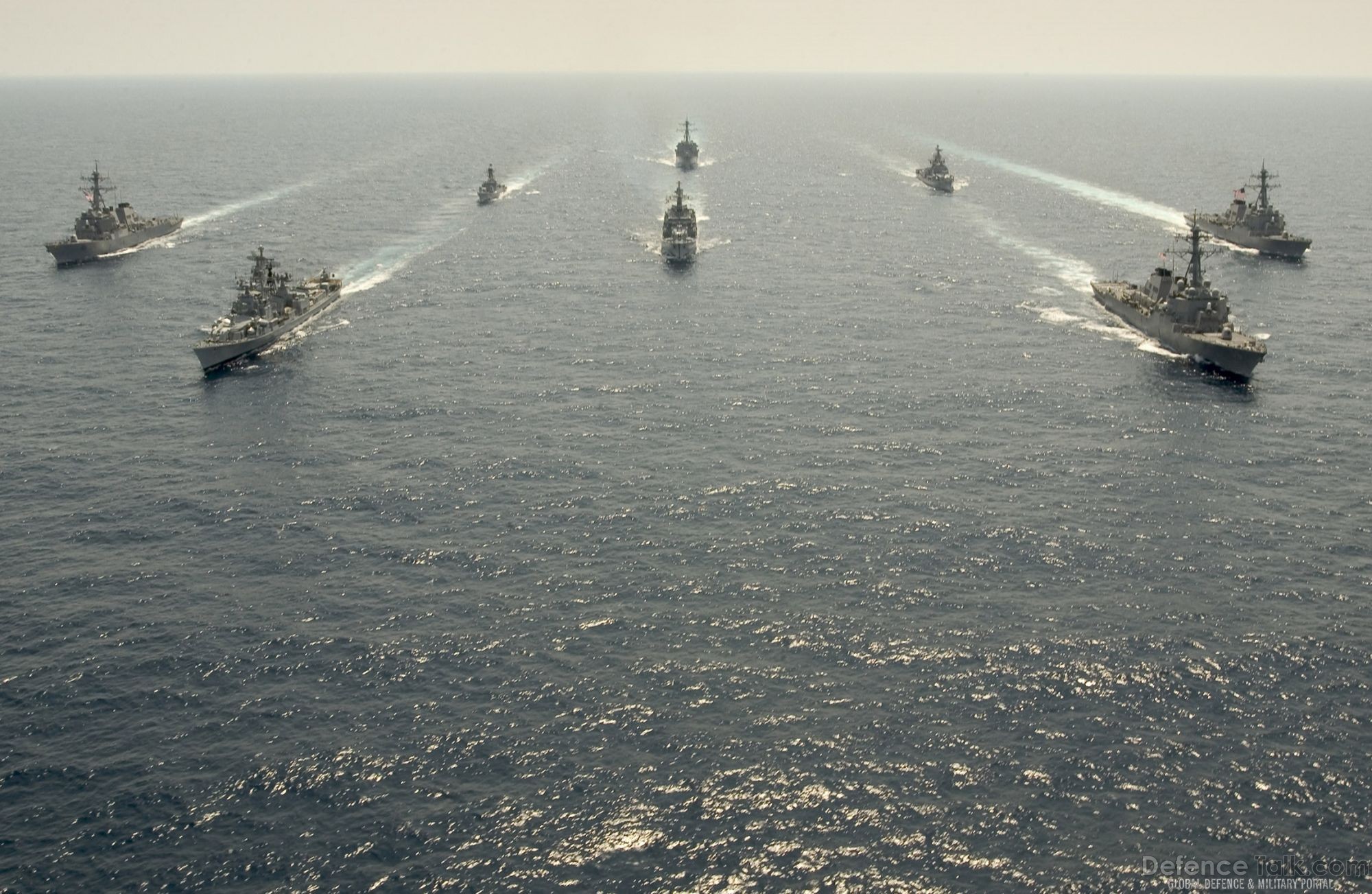 PHILIPPINE SEA (April 9, 2007) â U.S. and Indian Navy ships conducts a formation during Exercise Malabar 07-01. Malabar is a bilateral U.S.-Indian Navy training exercise off the coast of Okinawa, Japan. U.S. Navy photo by Mass Communication Specialist 1st Class John L. Beeman