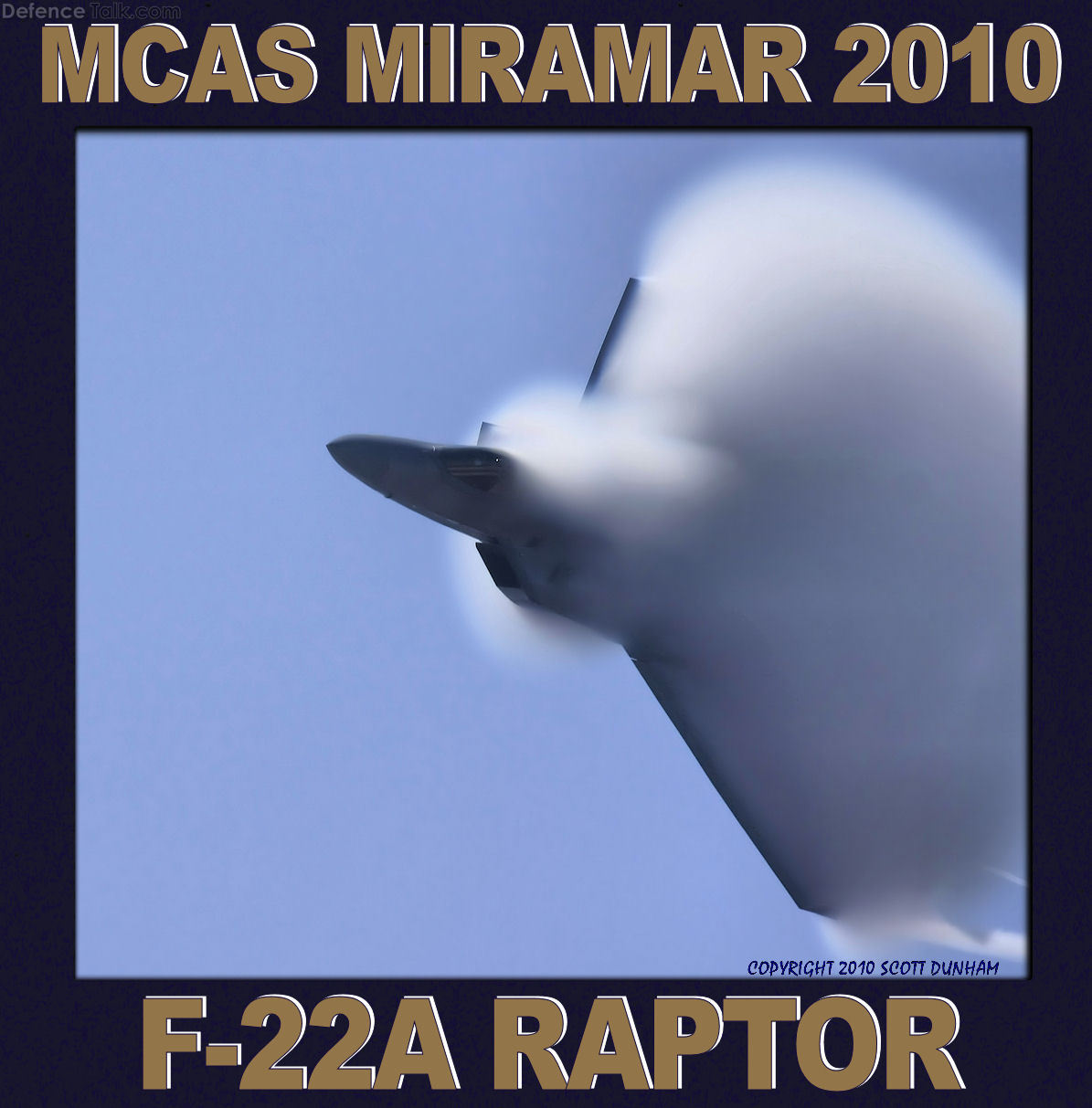 USAF F-22A Raptor Stealth Fighter. Air show flight demonstration - MCAS Miramar, October 2010.