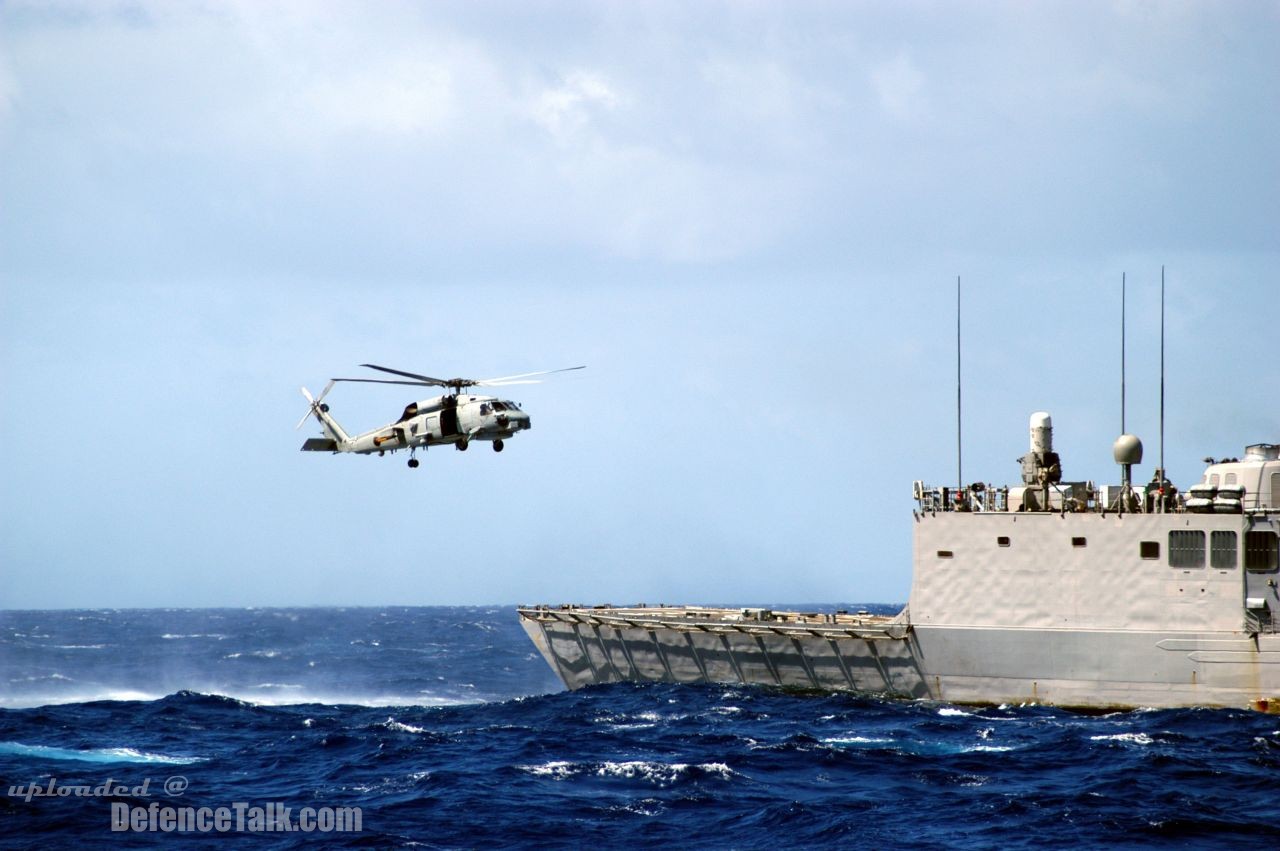 Puerto Rico Operating Area (Feb. 22, 2003) -- An SH-60 Seahawk assigned to the âProud Warriorsâ of Light Helicopter Anti-Submarine Squadron Four Two (HSL-42) lifts off of the flight deck of the guided missile frigates USS Boone (FFG 28). Boone is participating in UNITAS 44-03, which is the premier naval exercise in the Americas building lasting friendships while increasing the capability of U.S. Naval forces to operate as a multinational coalition. U.S. Navy photo.