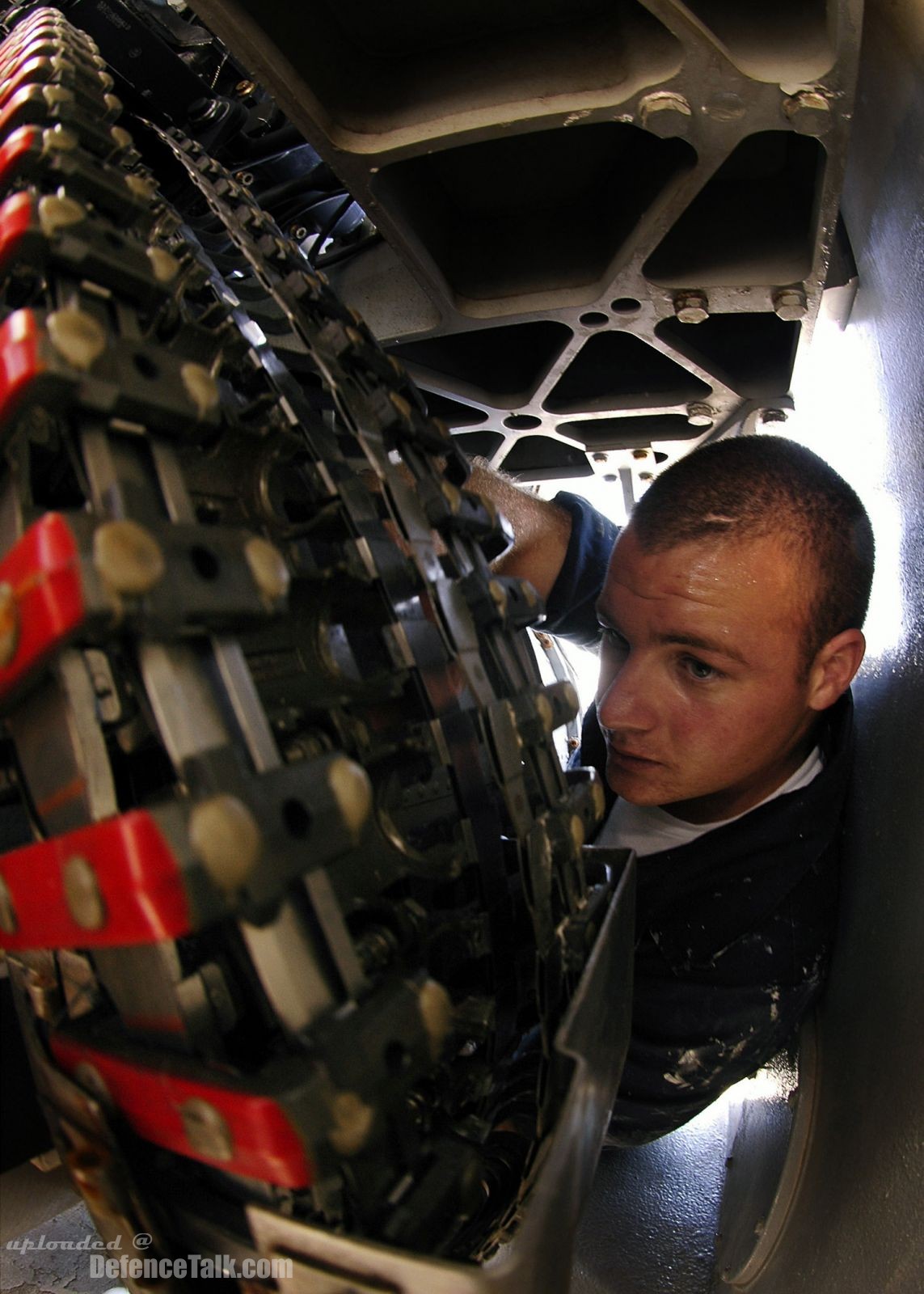 Pacific Ocean (June 19, 2006) Fire Controlman 2nd Class Vincent Ludouici conducts maintenance on the forward Close In Weapons System
